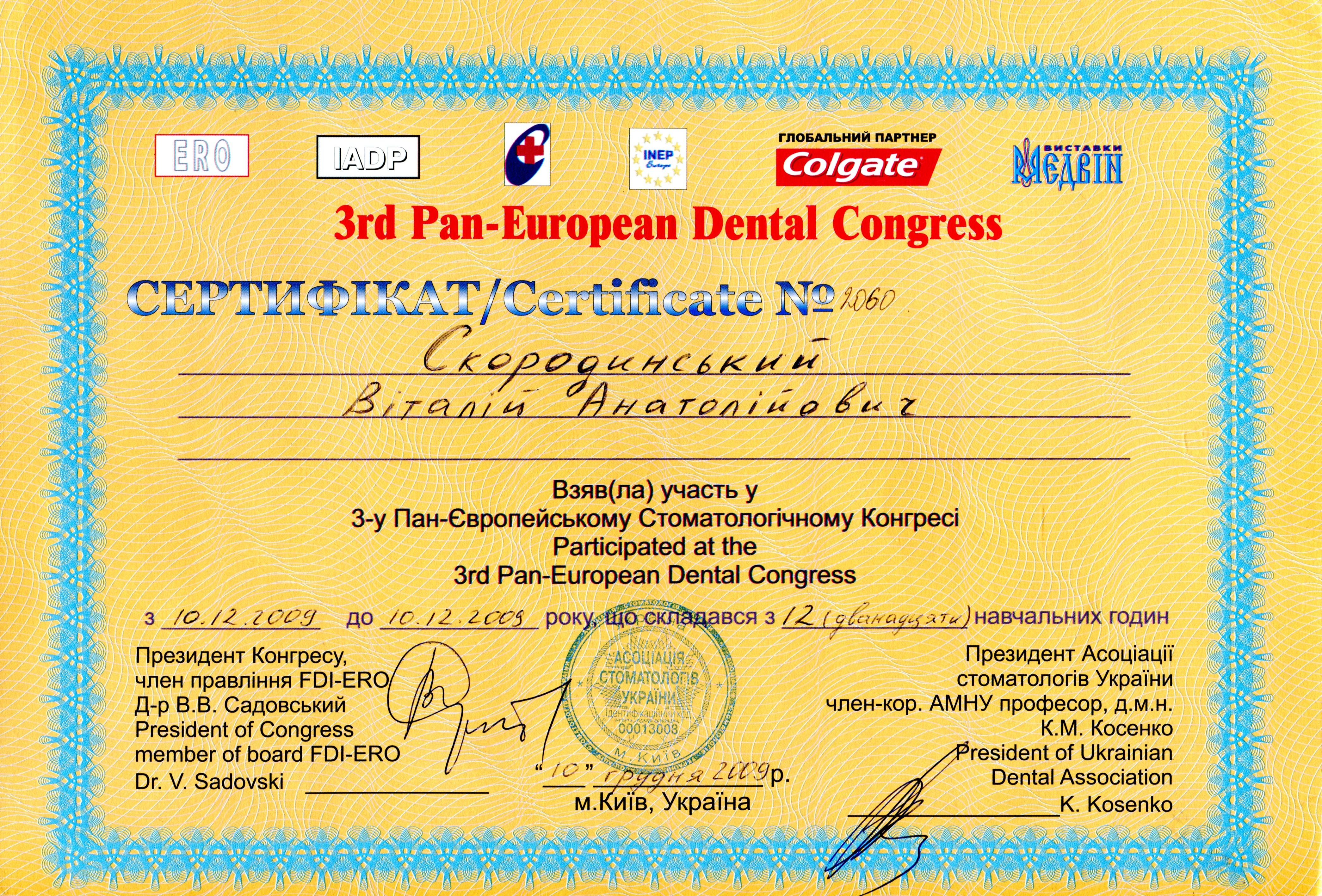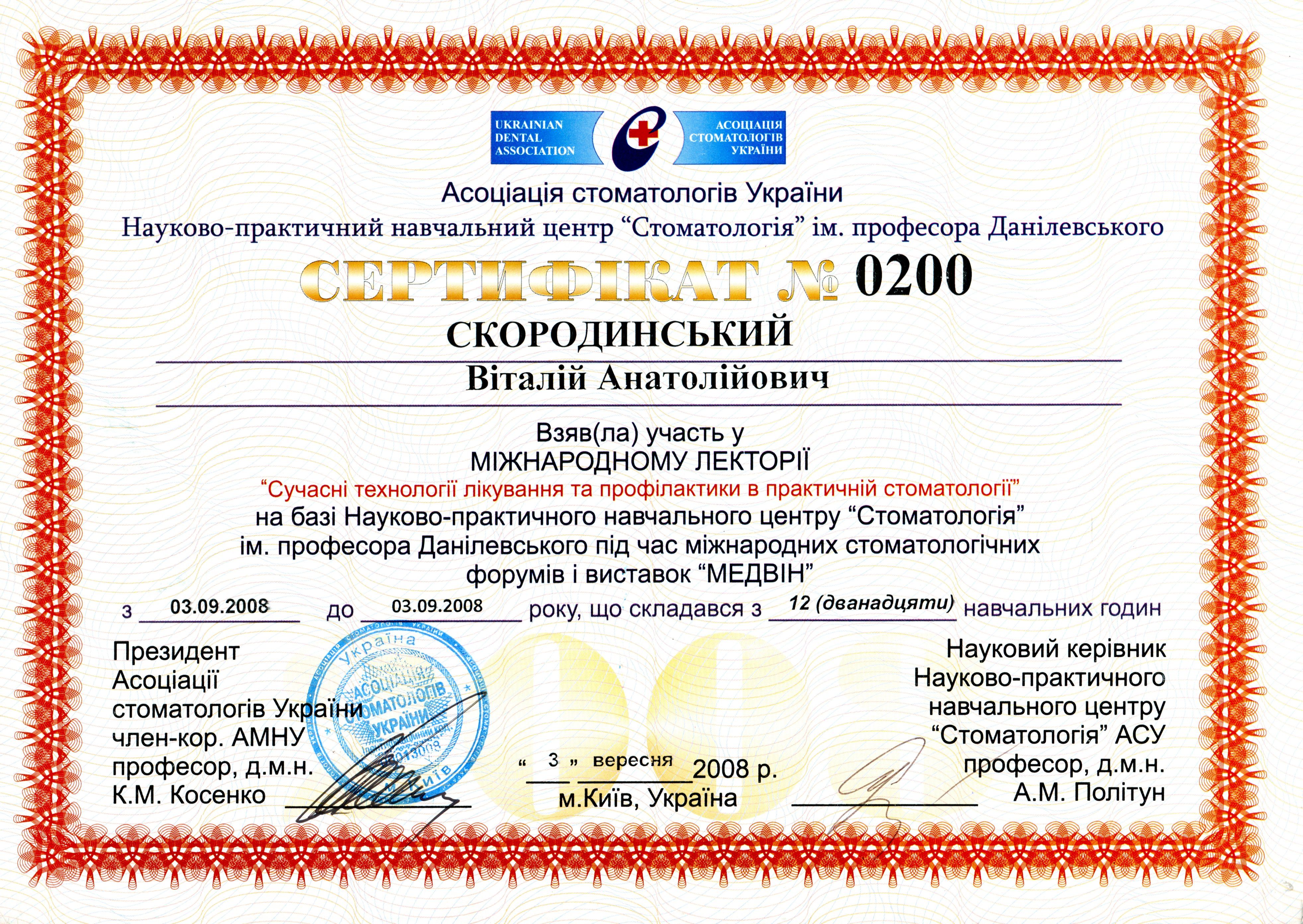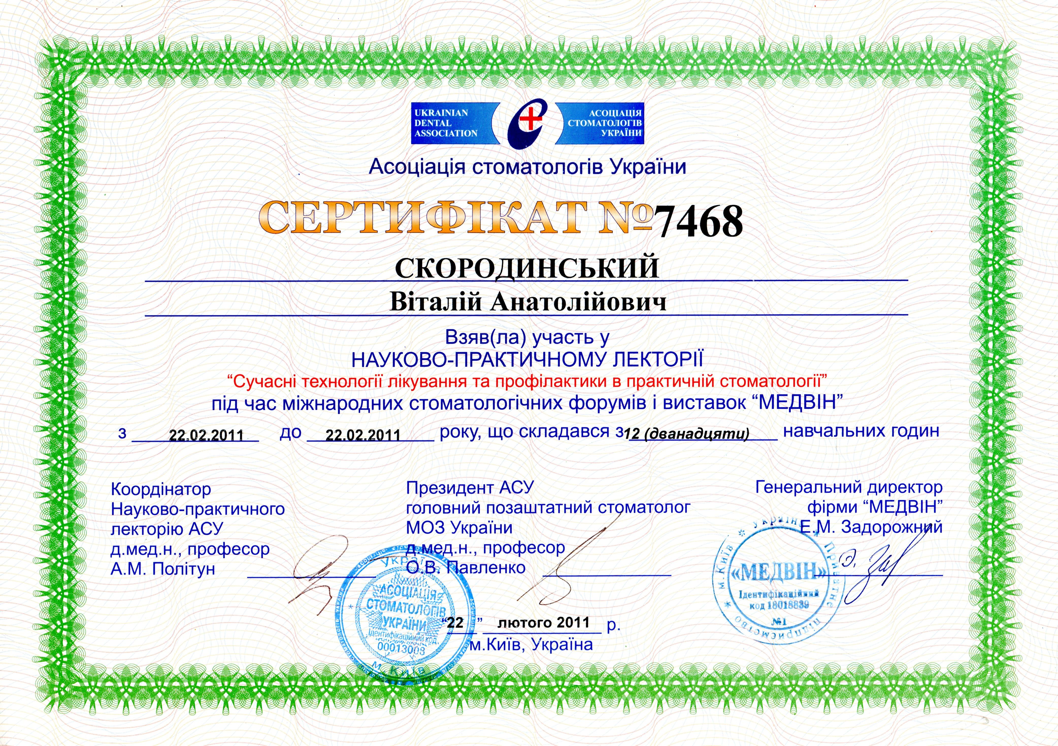 Врач стоматолог высшей категории со стажем работы по специальности более 15 лет